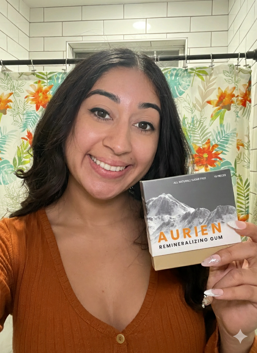 Aurien™ combines the simple habit of chewing gum with the power of NASA-developed Nano-Hydroxyapatite (n-Ha). This creates an "all-day remineralization bath" that continuously rebuilds weak enamel, plugs the open pores causing sensitivity, and naturally whitens teeth – all without the harsh chemicals, plastic base, or 2-minute time limit of toothpaste. Rebuild your smile, reclaim your confidence.